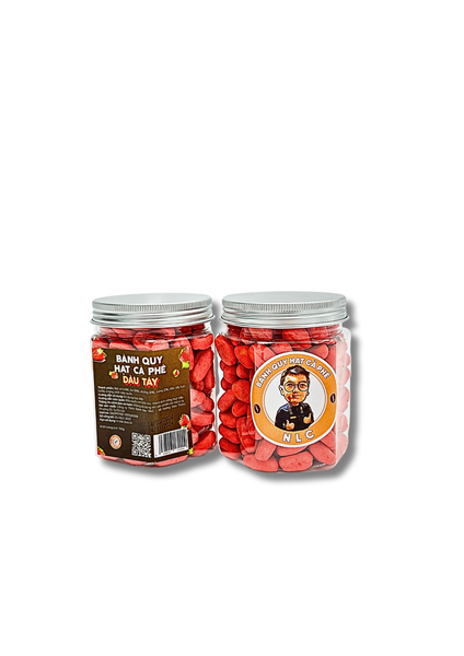 Bánh quy hạt cà phê vị dâu tây 150g mang đến sự kết hợp độc đáo giữa hương vị trái cây ngọt dịu và nền cà phê thơm nhẹ, tạo nên một món ăn vặt thơm ngon, lạ miệng và đầy hấp dẫn.