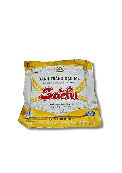 Thơm mùi mè, giòn rụm khi nướng, đậm đà vị gạo quê – Bánh tráng gạo mè Sạch là món ăn vặt truyền thống mang hương vị đặc trưng của vùng đất Bình Định. Được làm hoàn toàn từ gạo tẻ nguyên chất, mè đen và gia vị tự nhiên, sản phẩm giữ được vị mộc mạc, không hóa chất, không phẩm màu.