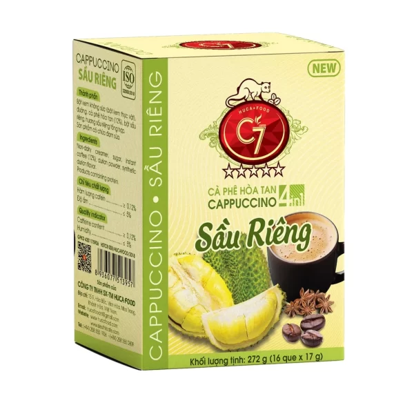 🌟 CÀ PHÊ HÒA TAN CAPPUCCINO SẦU RIÊNG 4IN1 – HỘP 16 QUE (272G) 🌟