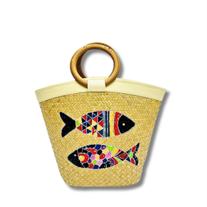 TÚI XÁCH CỎ BÀNG QUAI GỖ VẼ MỸ NGHỆ CÁ ĐỐI XỨNG