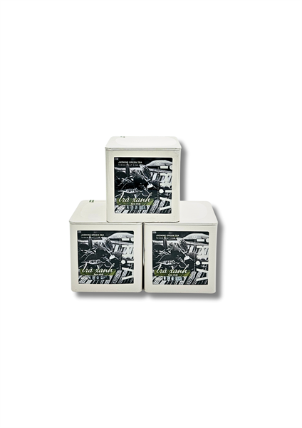 Trà xanh cao cấp được hái theo tiêu chuẩn “một búp ba lá”, đảm bảo hương vị tươi mới, vị đậm và ngọt hậu. Sau đó được ướp hoa nhài tự nhiên nhiều lần để giữ hương thơm thanh khiết, dịu nhẹ. Đóng gói trong hộp thiếc 100g giúp bảo quản hương vị lâu dài, thích hợp làm quà tặng.