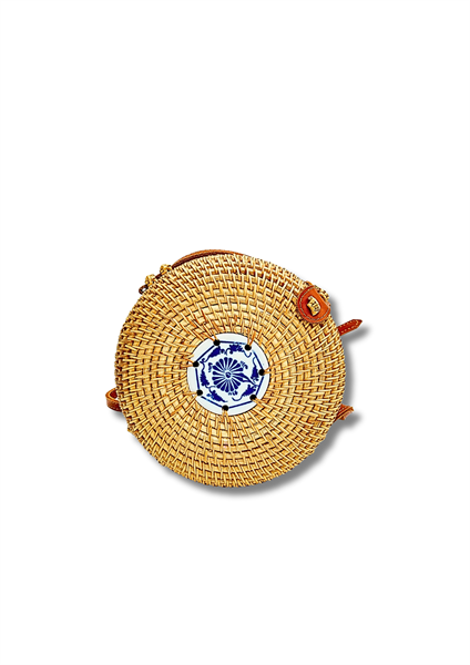 Lấy cảm hứng từ làng nghề thủ công truyền thống, chiếc túi mây viền ovan mix sứ là sự kết hợp độc đáo giữa mây tự nhiên đan tay tỉ mỉ và mảnh gốm sứ hoa văn xanh trắng mang dấu ấn văn hóa Á Đông.