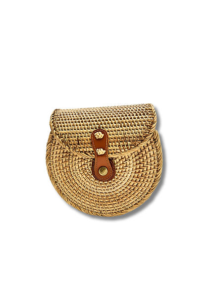 🔸 Chất liệu thủ công cao cấp: Mây tự nhiên đan tay tỉ mỉ, kết hợp chi tiết da và khóa cài kim loại chắc chắn.